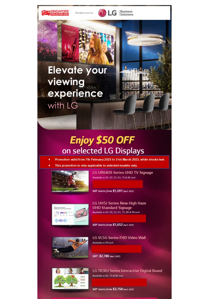 22Mar22/03/2023 LG Commercial Display PROMO Feb – Mar 2023 temp12023-03-22T00:57:36+00:00 Digital Signage, Uncategorized Share this post Facebook Twitter LinkedIn Google + Email