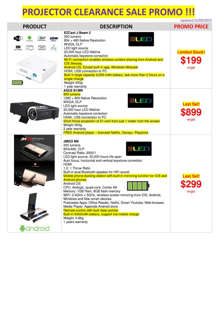 Projector and Visualiser Clearance Sale as at Mar 2023